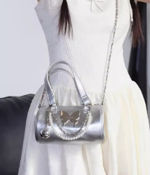 Moonlight Treasure Box cylindrical bag, crossbody commuting bag for women, advanced sense, silver ha