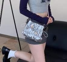 Silver bag, chain bag for women, 2024 new style bag, sweet and cool wrinkled drawstring crossbody ba